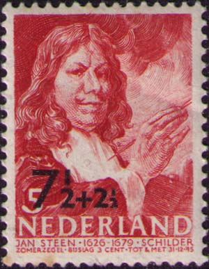 Надпечатка нового номинала на марке М354 с портретом Яна Стена в измененном цвете.