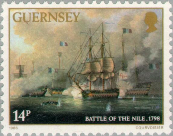 Philatelia.Ru / Бонапарт / Марки / HMS «Orion» в битве при НилеСерия: 150 лет со дня смерти адмирала Де Сомареза