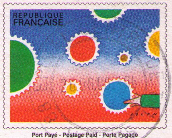 На марке: «Почта и Техника» (Жан-Мишель Фолон).
