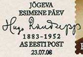 Йыгева. Первый день почтовой карточки МРо 44. Факсимиле Хуго Раудсеппа.