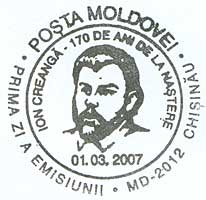 На марке: портрет Йона Крянгэ (Игорь Виеру).